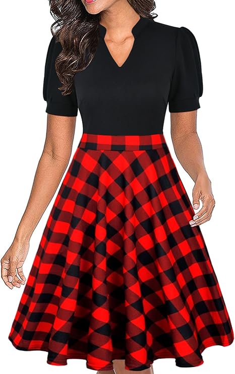 • ♥This simple & stylish business dresses for women featuring V neckline and puff sleeve.A flare a-line swing skirt falls from the fitted waist,easy to fits all body types